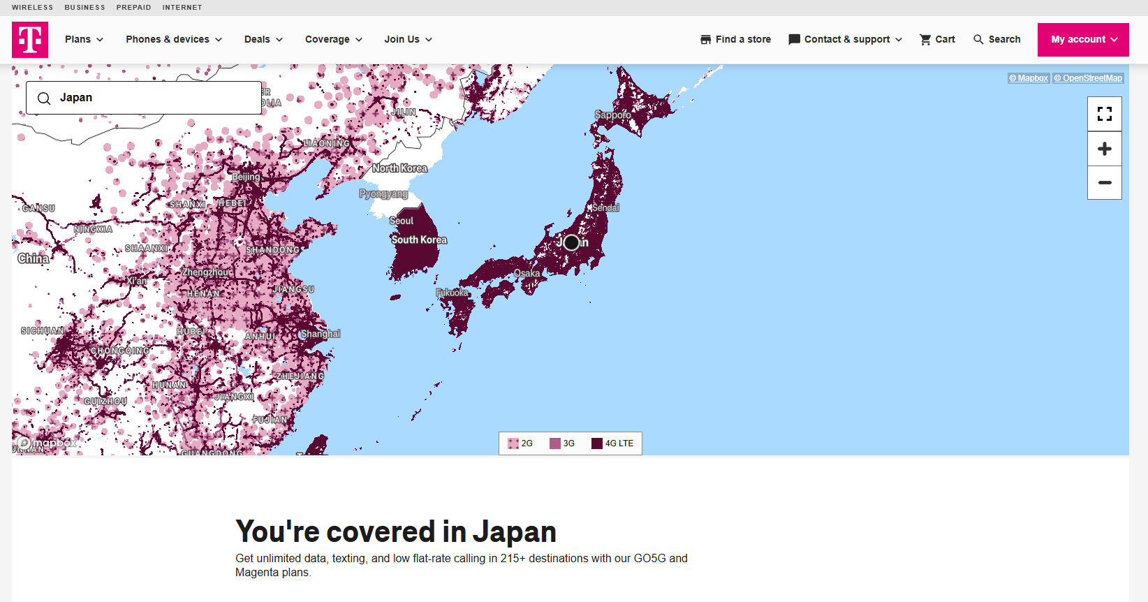 - 日本でのTモバイルのカバレッジ